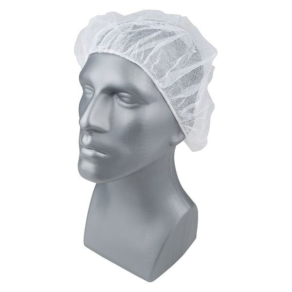 Bouffant Cap, Polypropylene, 24 in Dia., White, L, 100 PK