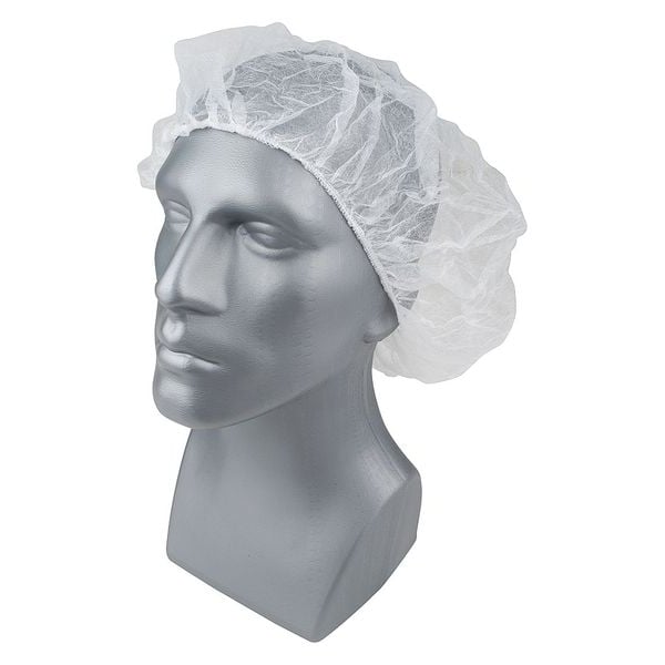 Bouffant Cap, Polypropylene, 28 in Dia., White, XL, 1000 PK