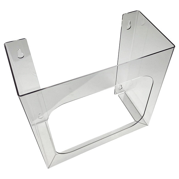Bouffant/Shoe Cover Dispenser, Center-to-Center Mounting Hole Spacing 8 5/8 in, Color Clear, Dispenser Capacity 100 Shoe Covers, Dispenser Features Not Applicable, Dispenser Layout 1 Box, Dispenser Style Not Applicable, Dispensing Method Open Front and Open Top, Includes Expansion Screw, Material PETG, Mounting Location Wall, Number of Compartments 1, Overall Depth 5 1/4 in, Overall Height 11 7/32 in, Overall Width 11 3/8 in, Printed Text Shoe Covers
