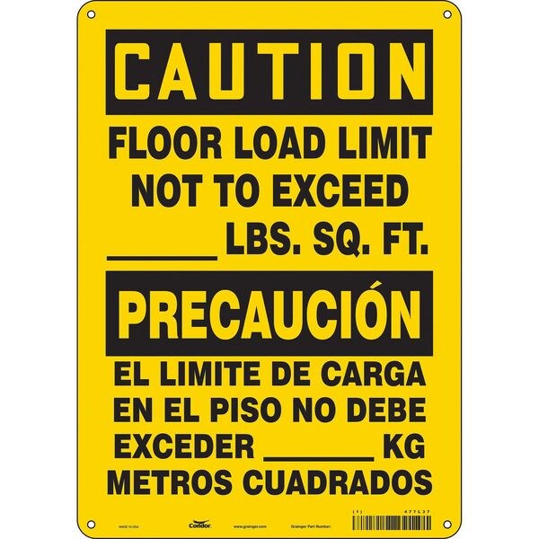 Safety Sign, Vertical Rectangle, Number of Printed Sides 1, English, Spanish, Sign Format Traditional OSHA, Sign Legend Floor Load Limit Not To Exceed _______ Lbs. Sq. Ft./El Limite De Carga En El Piso No Debe Exceder _______ Kg Metros Cuadrados, Sign Legend Background Color Yellow, Sign Legend Style Text