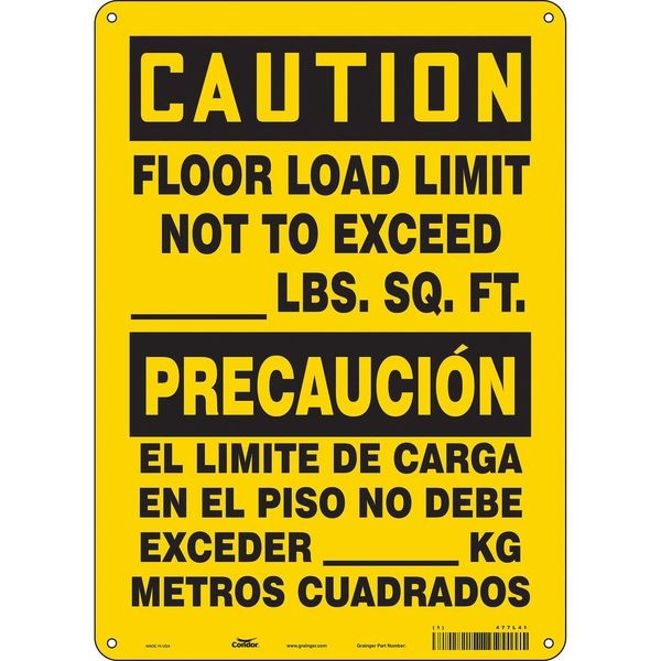 Traffic Sign, Vertical Rectangle, Number of Printed Sides 1, English, Spanish, Sign Format Traditional OSHA, Sign Legend Floor Load Limit Not To Exceed _______ Lbs. Sq. Ft./El Limite De Carga En El Piso No Debe Exceder _______ Kg Metros Cuadrados, Sign Legend Background Color Yellow, Sign Legend Style Text