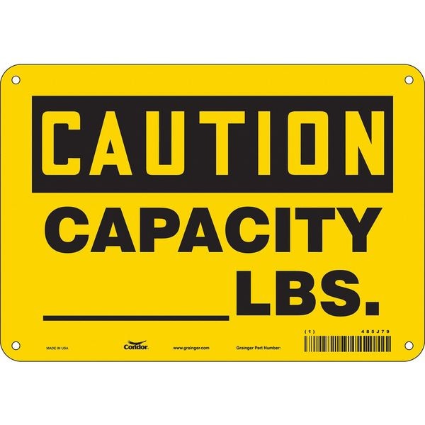 Caution, CAPACITY_ LBS., 10 in W x 7 in H, Vertical Rectangle, Aluminum, 485J79