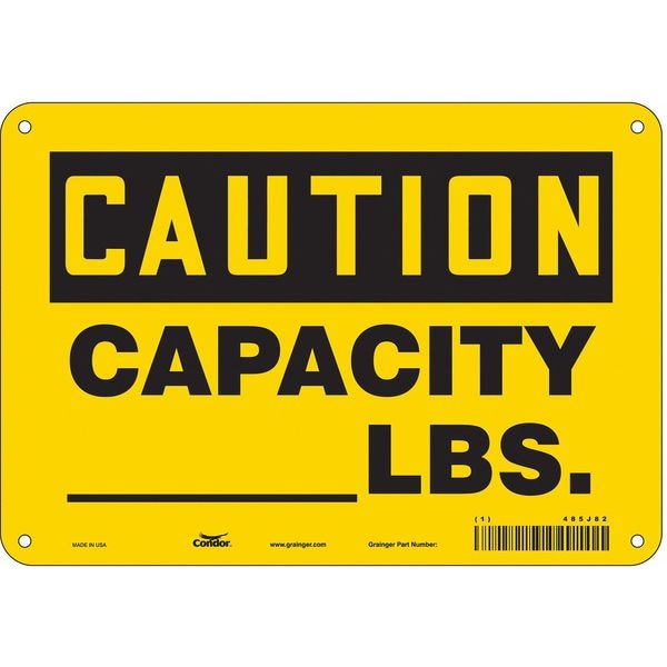 Caution, CAPACITY_ LBS., 10 in W x 7 in H, Vertical Rectangle, Polyethylene, 485J82