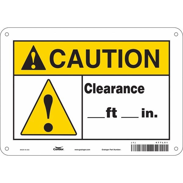 Caution, CLEARANCE _ FT _ IN., 10 in W x 7 in H, Vertical Rectangle, Polyethylene, 477L51