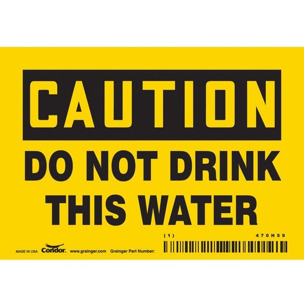 Safety Sign, Horizontal Rectangle, Number of Printed Sides 1, English, Sign Format Traditional OSHA, Sign Legend Do Not Drink This Water, Sign Legend Background Color Yellow, Sign Legend Style Text