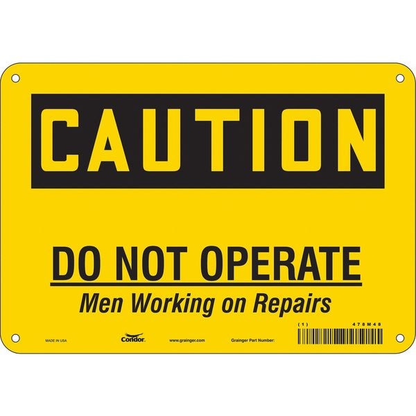 Caution, DO NOT OPERATE MAN WORKING ON REPAIRS, 10 in W x 7 in H, Polyethylene, 478M48
