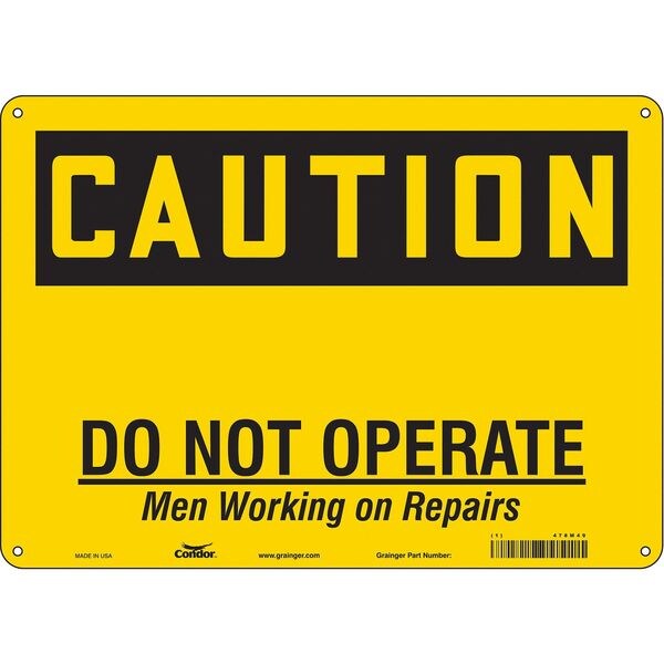 Safety Sign, Horizontal Rectangle, Number of Printed Sides 1, English, Sign Format Traditional OSHA, Sign Legend Do Not Operate Man Working On Repairs, Sign Legend Background Color Yellow, Sign Legend Style Text