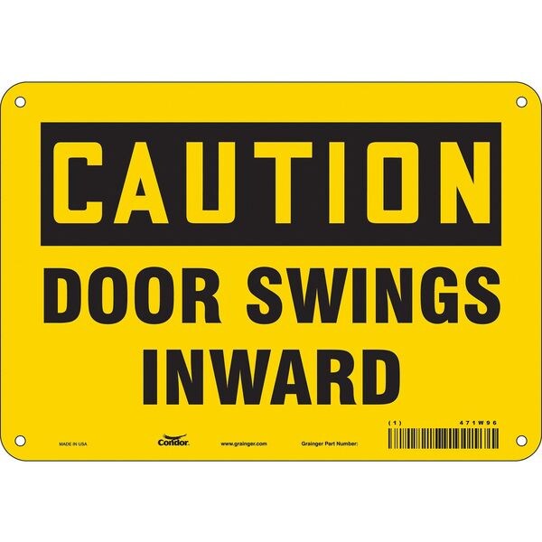 Caution, Door Swings Inward, 10 in W x 7 in H, Vertical Rectangle, Polyethylene, 471W96