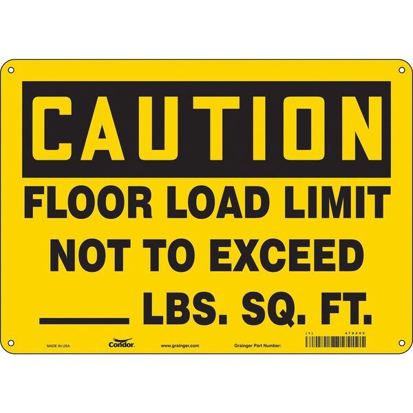 Caution, FLOOR LOAD LIMIT NOT TO EXCEED., 14 in W x 10 in H, Polyethylene, Rectangle, 478Z02