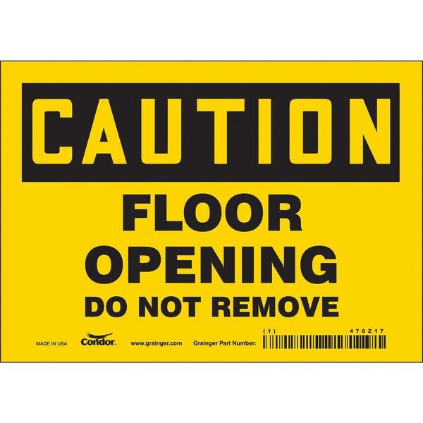 Caution, FLOOR OPENING DO NOT REMOVE, 7 in W x 5 in H, Horizontal Rectangle, Vinyl, 478Z17