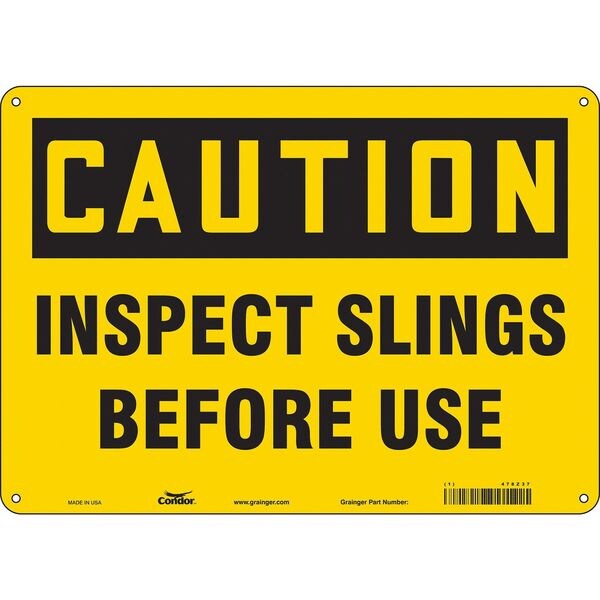 Caution, INSPECT SLINGS BEFORE USE, 14 in W x 10 in H, Horizontal Rectangle, Aluminum, 478Z37