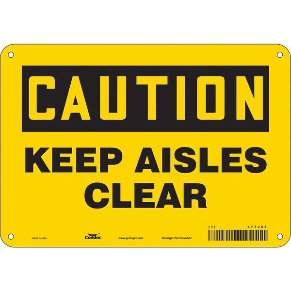Caution, KEEP AISLES CLEAR, 10 in W x 7 in H, Vertical Rectangle, Polyethylene, 477J63