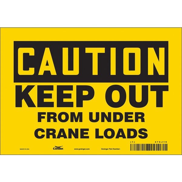 Caution, KEEP OUT FROM UNDER CRANE LOADS, 10 in W x 7 in H, Vertical Rectangle, Vinyl, 476J19
