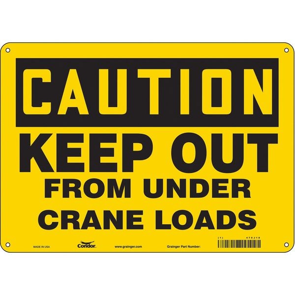 Caution, KEEP OUT FROM UNDER CRANE LOADS, 14 in W x 10 in H, Polyethylene, 476J18
