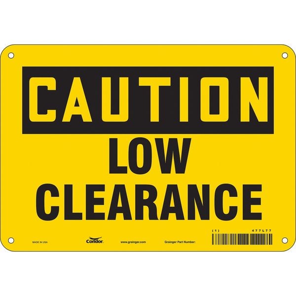 Caution, LOW CLEARANCE, 10 in W x 7 in H, Vertical Rectangle, Vinyl, 477L77
