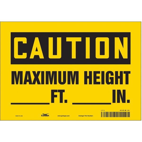 Caution, MAXIMUM HEIGHT _ FT. _ IN., 10 in W x 7 in H, Vertical Rectangle, Vinyl, 485K10