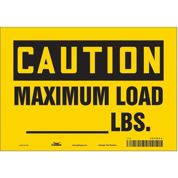 Caution, MAXIMUM LOAD _ LBS., 10 in W x 7 in H, Vertical Rectangle, Vinyl, 485K04