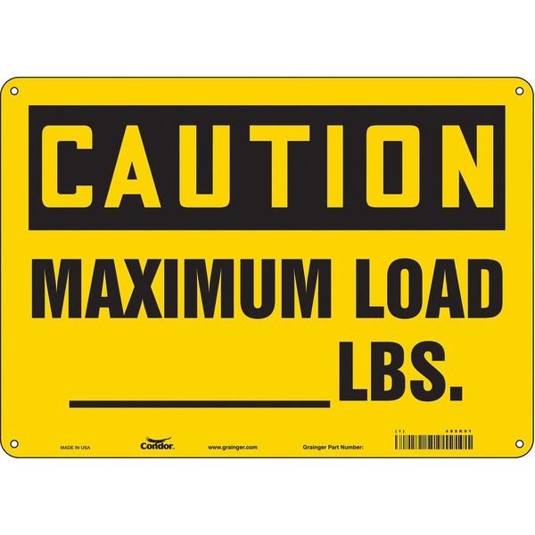 Caution, MAXIMUM LOAD _ LBS., 14 in W x 10 in H, Horizontal Rectangle, Aluminum, 485K01
