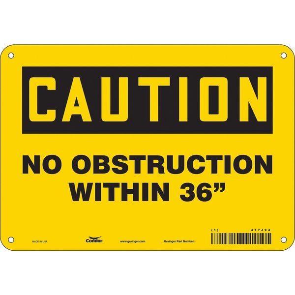 Caution, NO OBSTRUCTION WITHIN 36 in, 10 in W x 7 in H, Vertical Rectangle, Aluminum, 477J94