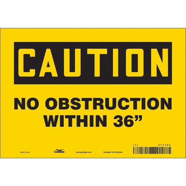 Caution, NO OBSTRUCTION WITHIN 36 in, 10 in W x 7 in H, Vertical Rectangle, Vinyl, 477J98