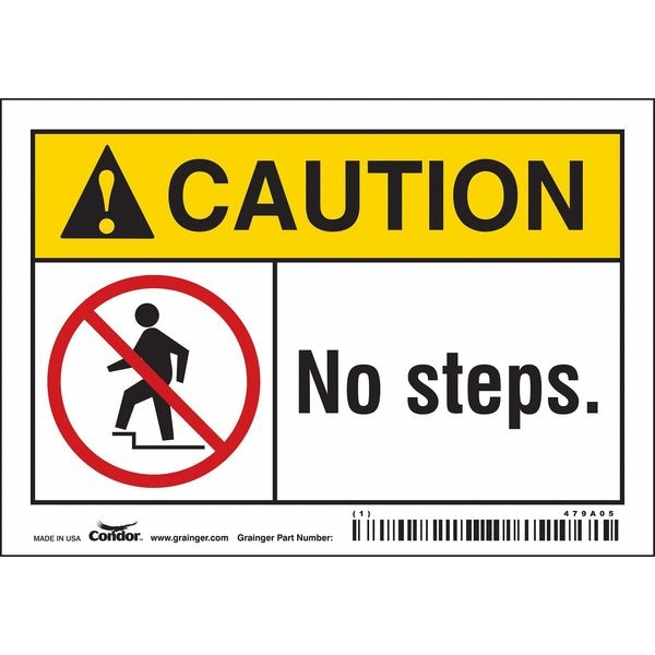 Caution, NO STEPS., 5 in W x 3 1/2 in H, Horizontal Rectangle, Vinyl, 479A05