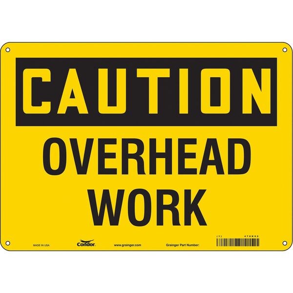 Caution, OVERHEAD WORK, 14 in W x 10 in H, Horizontal Rectangle, Aluminum, 478K92