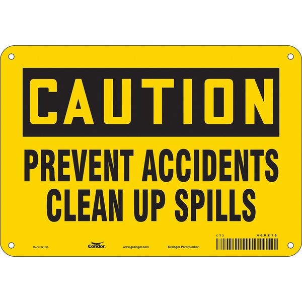Caution, PREVENT ACCIDENTS CLEAN UP SPILLS, 10 in x 7 in, Vertical Rectangle, Polyethylene, 468Z18