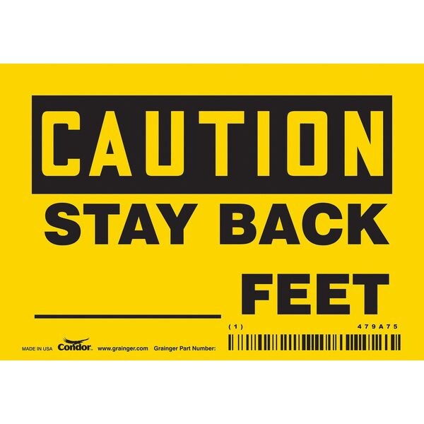 Caution, STAY BACK _FEET, 5 in W x 3 1/2 in H, Horizontal Rectangle, Vinyl, 479A75