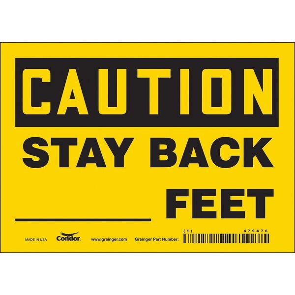 Caution, STAY BACK _FEET, 7 in W x 5 in H, Horizontal Rectangle, Vinyl, 479A76