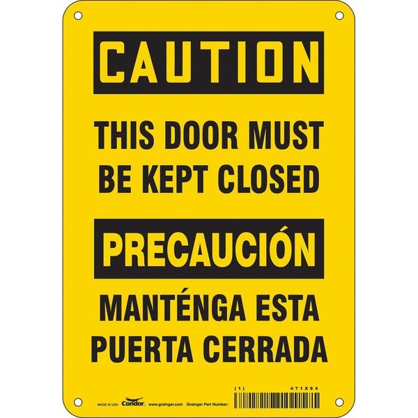 Caution, This Door Must Be Kept Closed, Spanish-Bilingual, 7 in W x 10 in H, Polyethylene, 471X64