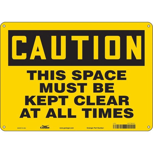 Caution, THIS SPACE MUST BE KEPT CLEAR AT ALL TIMES, 14 in W x 10 in H, Horizontal Rectangle, 477K31