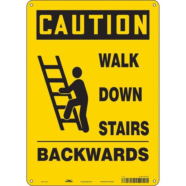 Caution, WALK DOWN STAIRS BACKWARDS, 10 in W x 14 in H, Vertical Rectangle, Polyethylene, 485P90