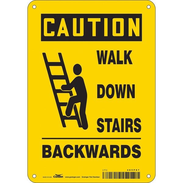 Caution, WALK DOWN STAIRS BACKWARDS, 7 in W x 10 in H, Horizontal Rectangle, Aluminum, 485P87