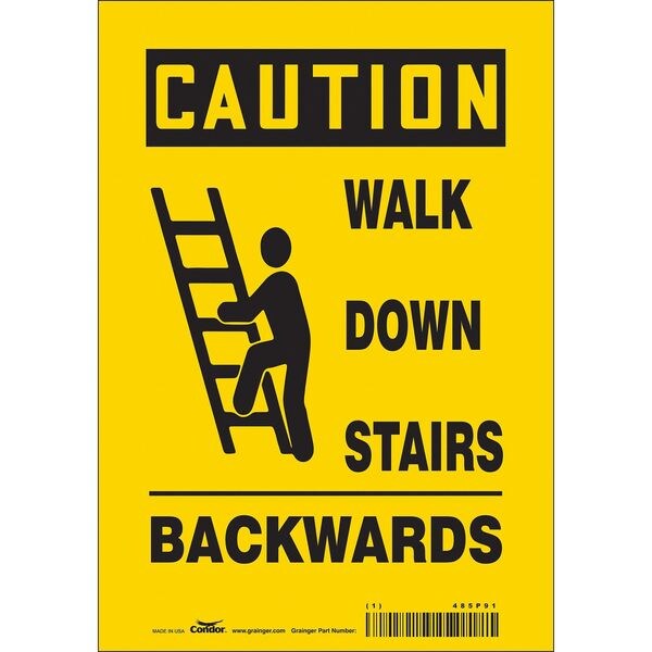 Caution, WALK DOWN STAIRS BACKWARDS, 7 in W x 10 in H, Horizontal Rectangle, Vinyl, 485P91