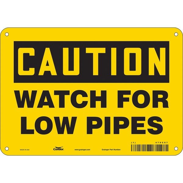Caution, WATCH FOR LOW PIPES, 10 in W x 7 in H, Vertical Rectangle, Aluminum, 479C07