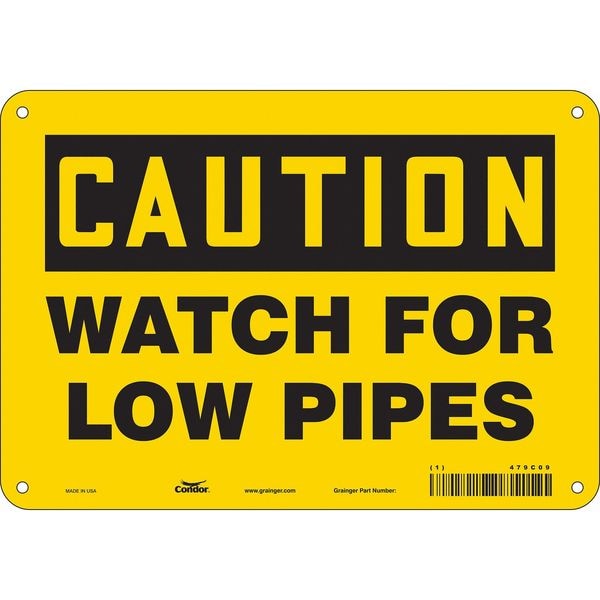 Caution, WATCH FOR LOW PIPES, 10 in W x 7 in H, Vertical Rectangle, Polyethylene, 479C09