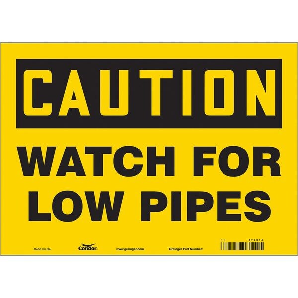 Caution, WATCH FOR LOW PIPES, 14 in W x 10 in H, Horizontal Rectangle, Vinyl, 479C14