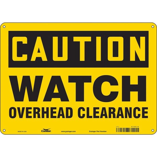 Caution, WATCH OVERHEAD CLEARANCE, 14 in W x 10 in H, Horizontal Rectangle, Aluminum, 479C16