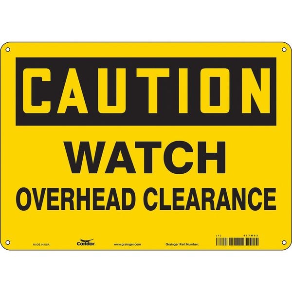 Caution, WATCH OVERHEAD CLEARANCE, 14 in W x 10 in H, Horizontal Rectangle, Polyethylene, 477M03