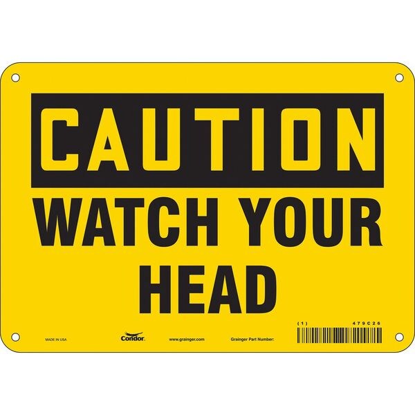 Caution, WATCH YOUR HEAD, 10 in W x 7 in H, Vertical Rectangle, Polyethylene, 479C26