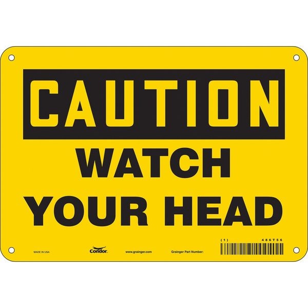 Caution, WATCH YOUR HEAD, 10 in W x 7 in H, Vertical Rectangle, Polyethylene, 486T56