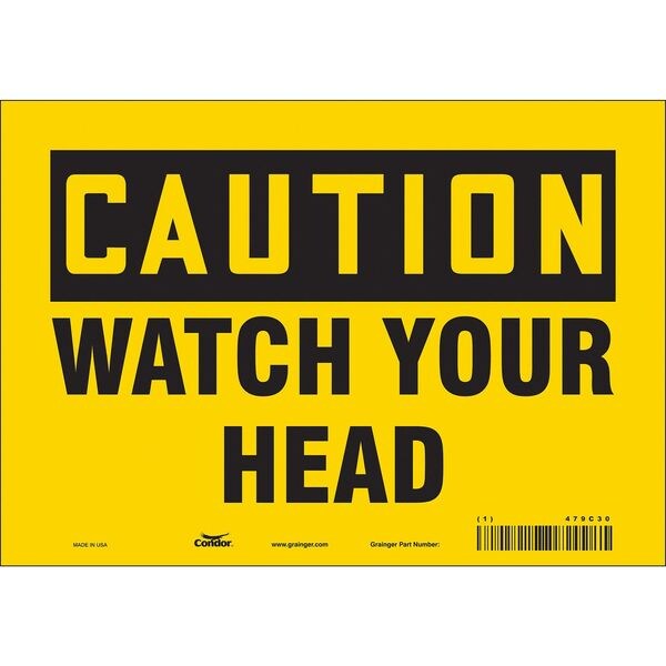 Caution, WATCH YOUR HEAD, 10 in W x 7 in H, Vertical Rectangle, Vinyl, 479C30