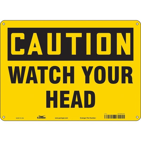Caution, WATCH YOUR HEAD, 14 in W x 10 in H, Horizontal Rectangle, Aluminum, 479C25