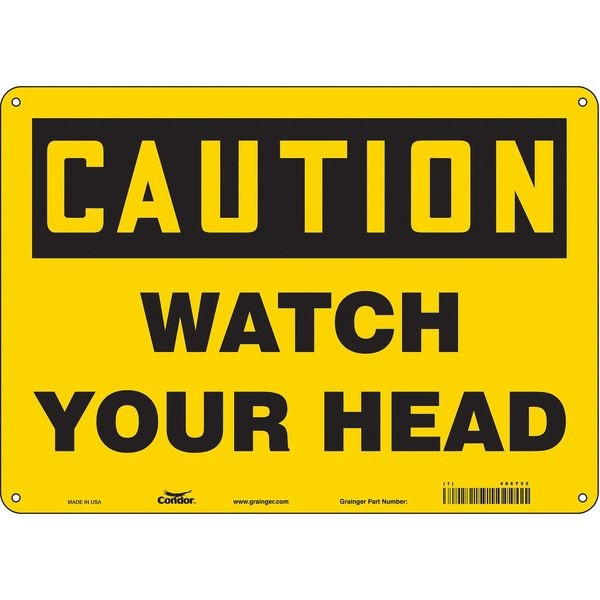 Caution, WATCH YOUR HEAD, 14 in W x 10 in H, Horizontal Rectangle, Aluminum, 486T55