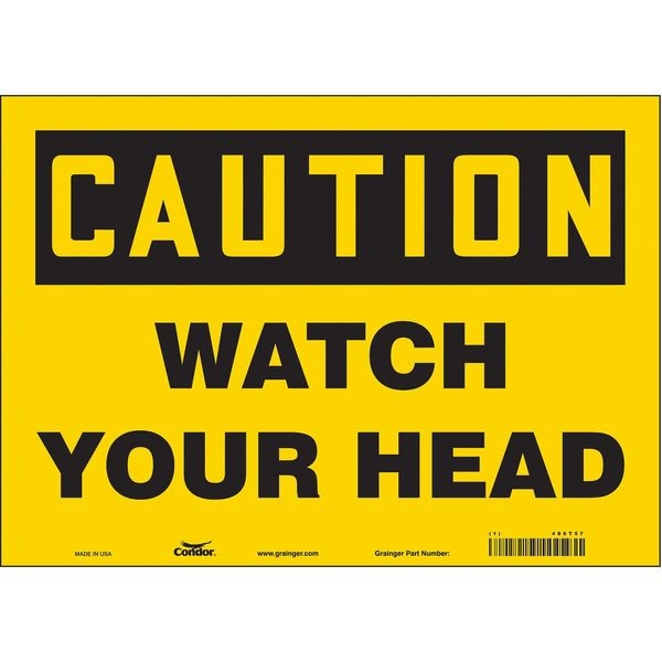 Caution, WATCH YOUR HEAD, 14 in W x 10 in H, Horizontal Rectangle, Polyethylene, 486T57
