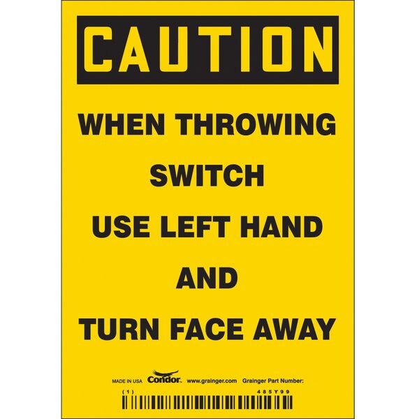 Electrical Sign, Vertical Rectangle, Number of Printed Sides 1, English, Sign Format Traditional OSHA, Sign Legend When Throwing Switch Use Left Hand And Turn Face Away, Sign Legend Background Color Yellow, Sign Legend Style Text
