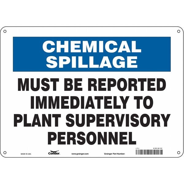 Chemical Sign, Horizontal Rectangle, Number of Printed Sides 1, English, Sign Format Other Format, Sign Legend Must Be Reported Immediately To Plant Supervisory Personnel, Sign Legend Background Color Blue, White, Sign Legend Style Text