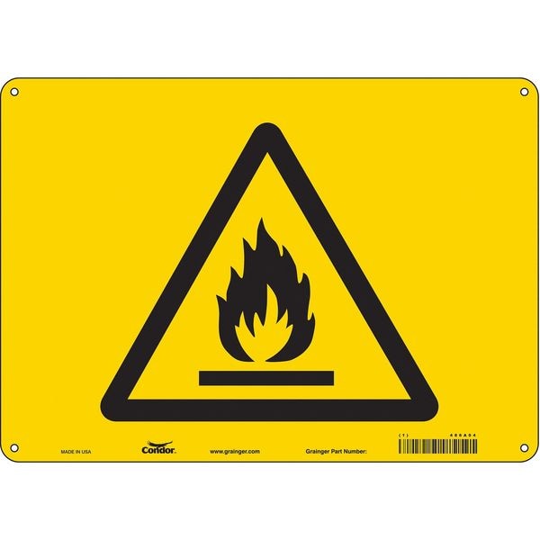 Chemical Sign, Horizontal Rectangle, Number of Printed Sides 1, English, Sign Format Other Format, Sign Legend Flammable Symbol, Sign Legend Background Color Yellow, Sign Legend Style Symbol