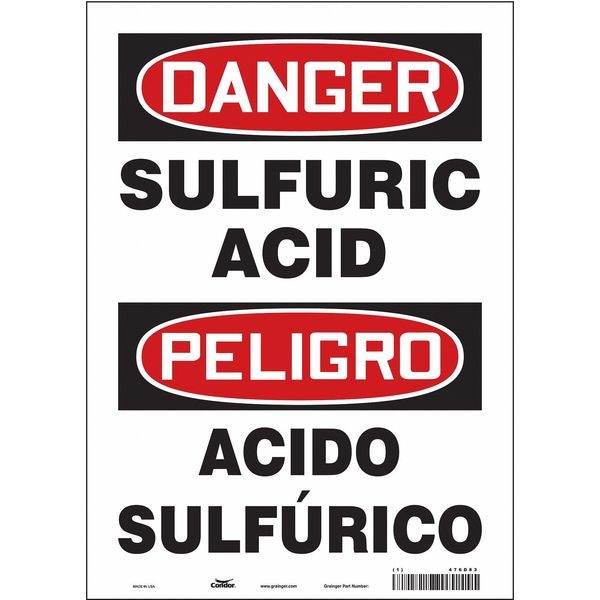Safety Sign, Vertical Rectangle, Number of Printed Sides 1, Spanish, Sign Format Traditional OSHA, Sign Legend Sulfuric Acid/Acido Sulfurico, Sign Legend Background Color White, Sign Legend Style Text