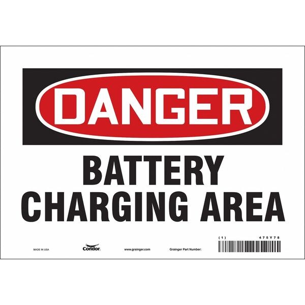 Chemical Sign, Vertical Rectangle, Number of Printed Sides 1, English, Sign Format Traditional OSHA, Sign Legend Battery Charging Area, Sign Legend Background Color White, Sign Legend Style Text
